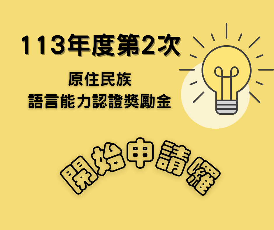 113年度第2次原住民族語言能力認證獎勵金開始申請囉